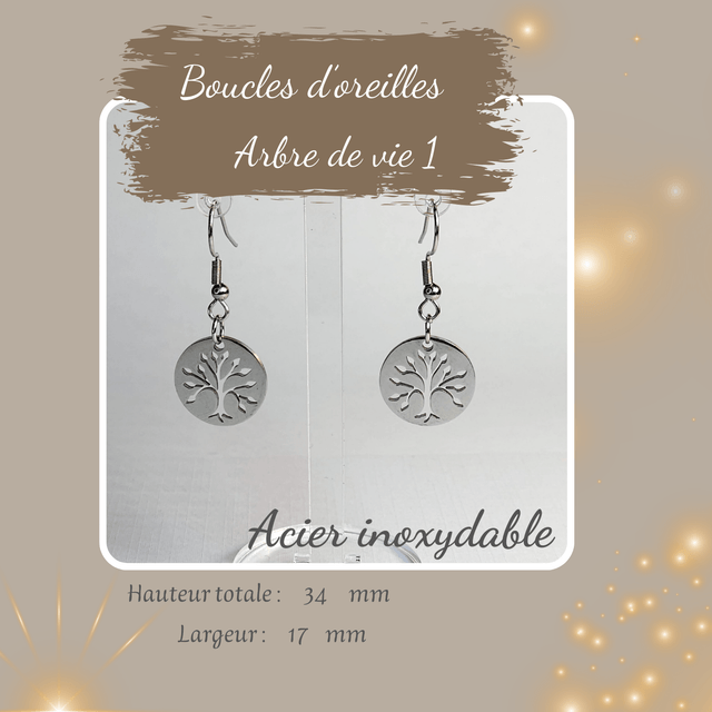 Boucles d'oreilles Acier inoxydable - Arbre de vie