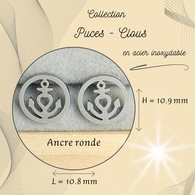 Clous d'oreilles en acier inoxydable couleur argent, Thème Marin.