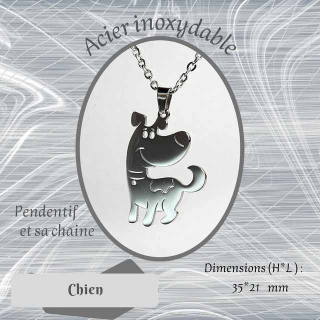 Pendentif CHIEN et sa chaîne en acier inoxydable d'environ 55cm.